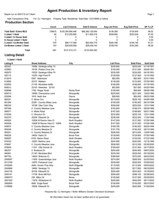 This report summarizes real estate sales transactions for agent CJ Harrington between 1991-2010. It shows that the agent sold 59 properties that they listed, with an average list price of $206,880 and average sold price of $202,636. The agent also sold 479 properties listed by other agents, with an average list price of $200,788 and average sold price of $195,190. Details are provided on the individual listings and sales for properties the agent both listed and sold.