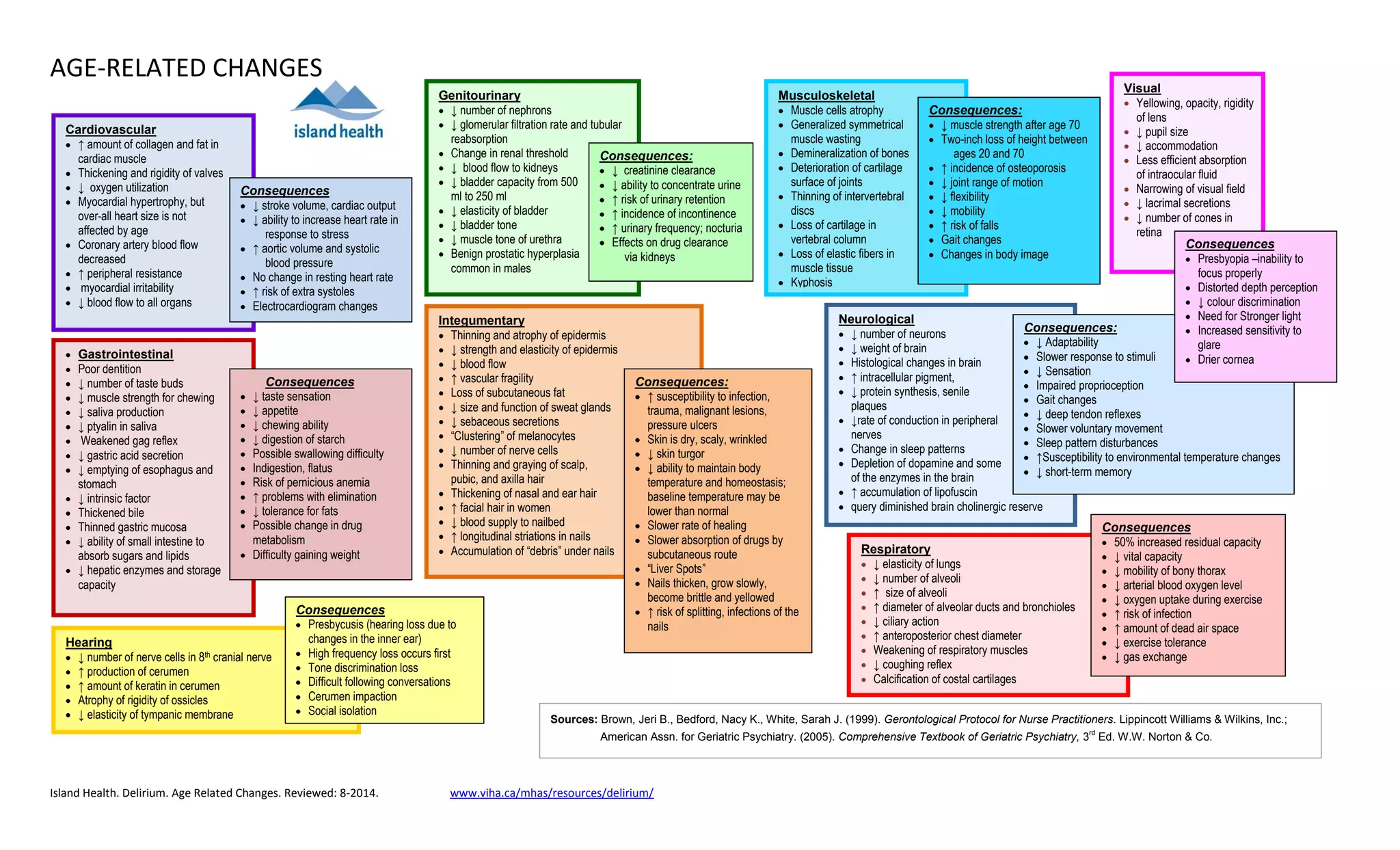 The document outlines many of the common age-related changes that occur in major body systems. As people age, their cardiovascular, gastrointestinal, genitourinary, integumentary, and other body systems undergo changes such as decreased organ function, loss of tissue elasticity, and diminished capacity of organs. These physiological changes can lead to consequences like reduced mobility, impaired digestion and continence, slower healing, and increased susceptibility to disease. The document provides details on specific changes and consequences for each major body system as part of the normal aging process.
