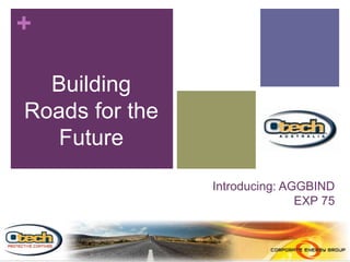 The document introduces Aggbind, a bitumen adhesive agent produced by Otech Australia that provides optimum adhesion for road sealing and prevents issues like potholes and stripping. It discusses the technical advantages of Aggbind over other products, provides specifications and test results, and presents Aggbind as a proven solution in the market based on third party accreditation and customer testimonials. The document also provides contact information for WBF PTE LTD, the distributor of Otech road maintenance products in Asian markets.