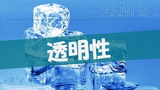 ‘00s ‘10s ソフトウェアは【便利】 ソフトウェアは【有効】 ソフトウェアは【不可欠】 完成したソフトウェア ビジネスにマッチしたソフトウェア 個人のアジリティ チームのアジリティ ビジネスのアジリティ I’m done. We’re done. IDE ALM 1.0 ALM 2.0