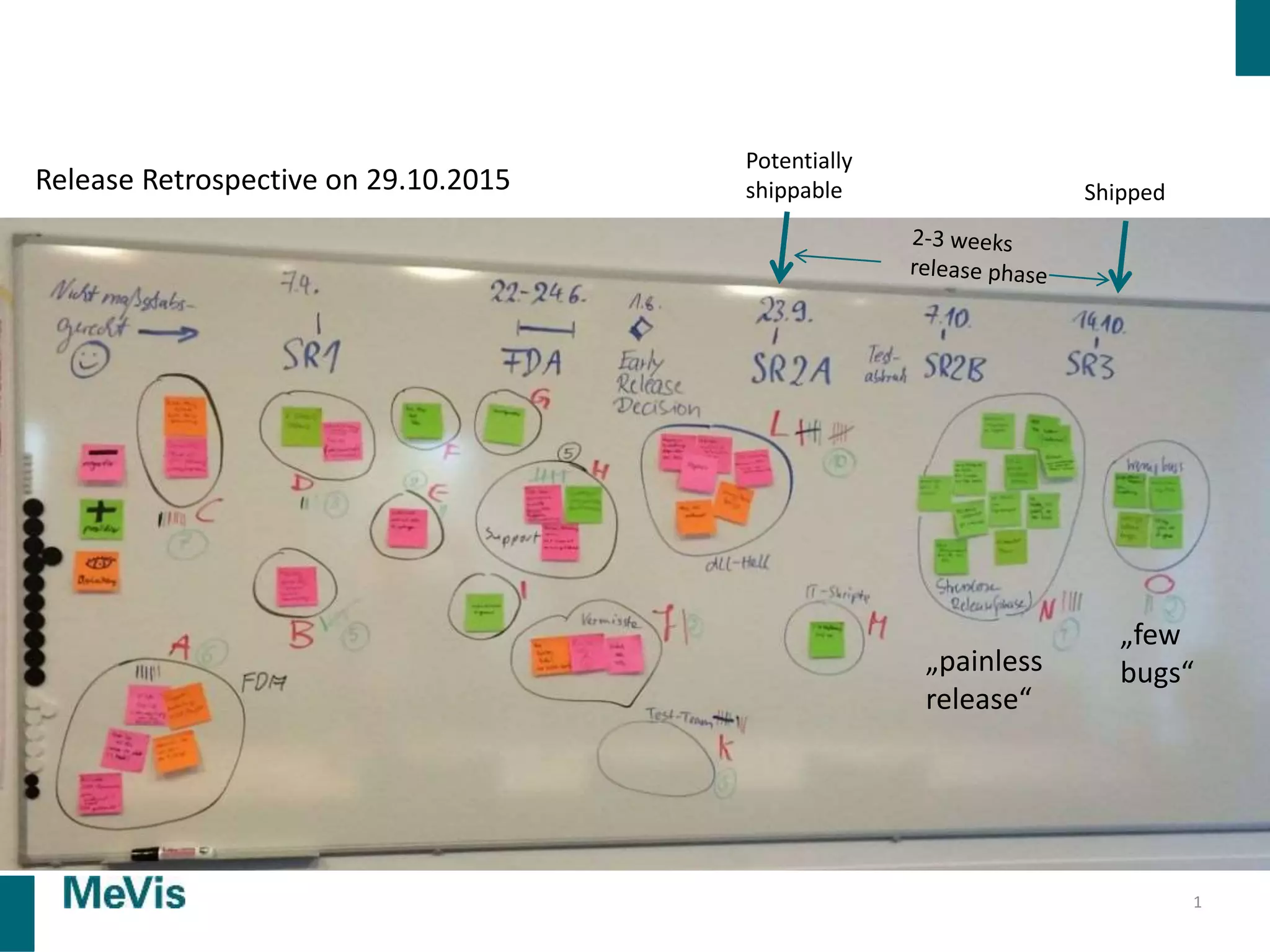 The document details a retrospective on agile transformation at Mevis Medical Solutions, highlighting their experience with implementing agile practices in a regulated environment. It discusses the alignment of agile values with regulatory requirements, the challenges faced, and the benefits realized, such as improved team collaboration and reduced bugs in releases. Lastly, it presents the importance of cultural changes and transparency within the organization to foster a successful agile framework.
