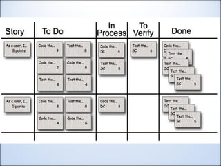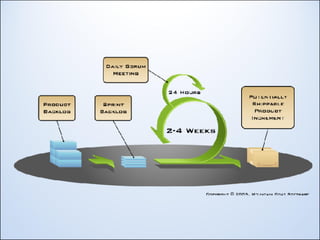 The document discusses Agile development from a developer's perspective. It defines Agile as a set of processes for faster software development that values individuals, collaboration, and response to change over rigid processes. The Agile Manifesto and principles emphasize satisfying customers, effective communication, trust, and continuous improvement. Specific Agile practices like Scrum and its roles, ceremonies, and artifacts are covered. The document also discusses engineering practices like testing, version control, and continuous integration used in Agile development.