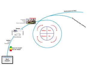This document discusses an agile learning process. It emphasizes high relevance and commitment through defining goals and roles. The process involves gathering difficult issues to address, designing activities to validate learnings, and developing solutions while practicing and learning. Contributors are involved at each stage to ensure realism and impact.