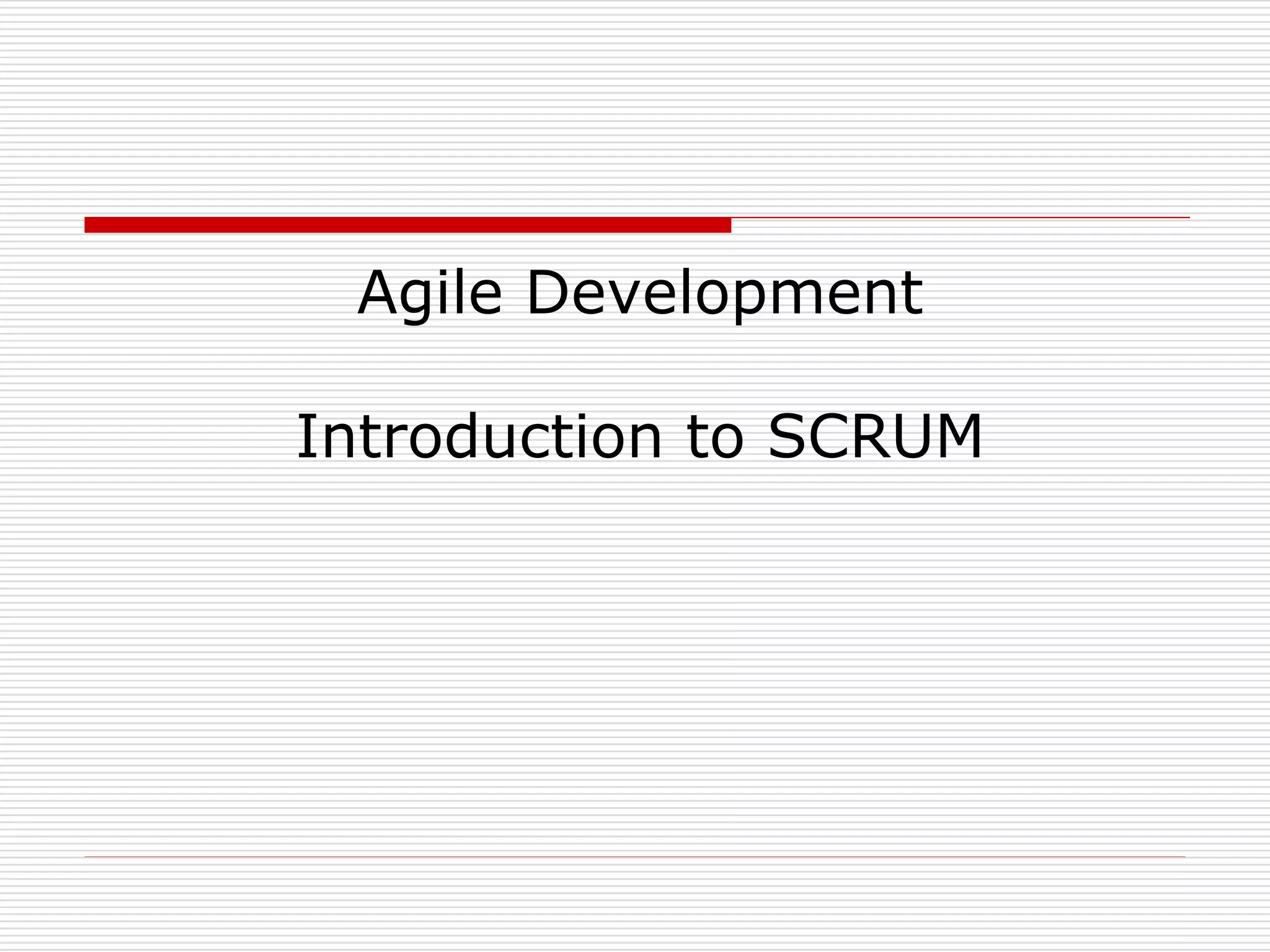 This document provides an introduction to Agile development and Scrum methodology. It discusses that Agile focuses on iterative development with collaboration between cross-functional teams. Scrum is an Agile methodology that uses sprints, daily stand-ups, backlogs and emphasizes self-organizing teams. A Scrum team works in sprints to develop working software increments based on prioritized backlog items.