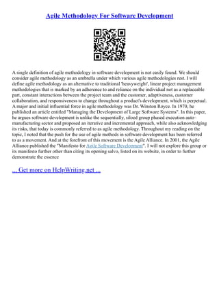 - Testing and documentation may be reduced as focus is on working software over documentation.