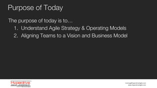 This document contains slides from a presentation on aligning strategy and operating models using agile principles. Some key points include: