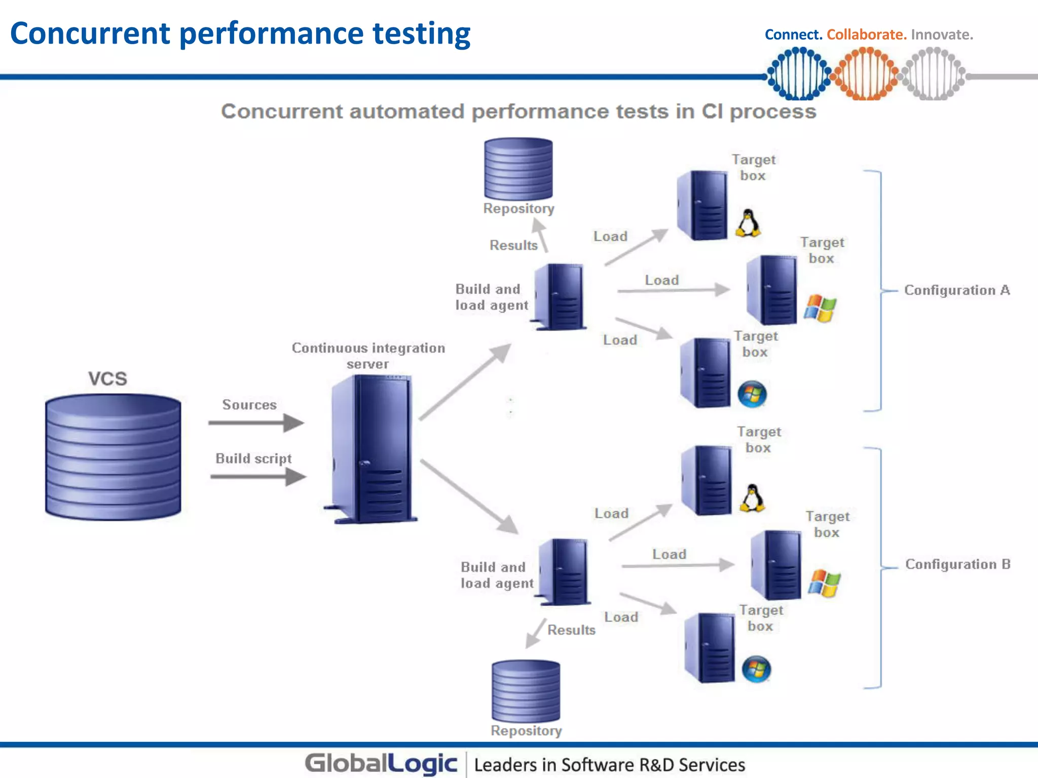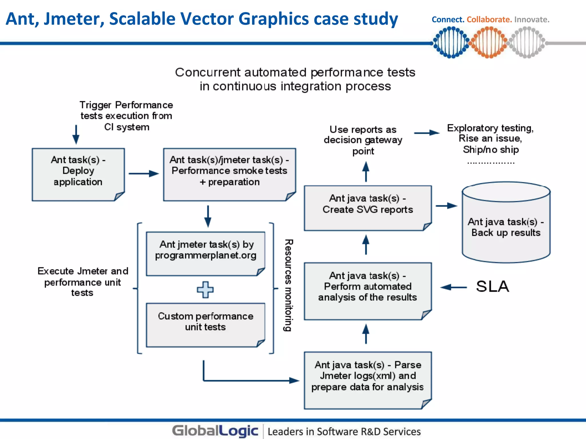 The document outlines a 7-step process for performance testing a critical Java enterprise application: 1) identify the test environment, 2) identify performance acceptance criteria, 3) plan and design tests, 4) implement the test design, 5) configure the test environment, 6) execute the tests, and 7) analyze results, report, and retest if necessary.