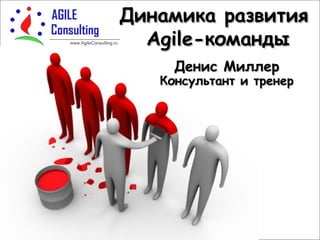 Документ обсуждает динамику развития agile-команд, акцентируя внимание на свойствах эффективной команды, включая нацеленность на результат и взаимную ответственность. Предоставляются методы формирования команд и ключевые подходы, такие как целеполагающий и межличностный подходы, а также влияние культуры agile на производительность. Приводятся статистические данные о применении самоуправляемых рабочих команд среди компаний Fortune 1000 и их влиянии на организационные показатели.