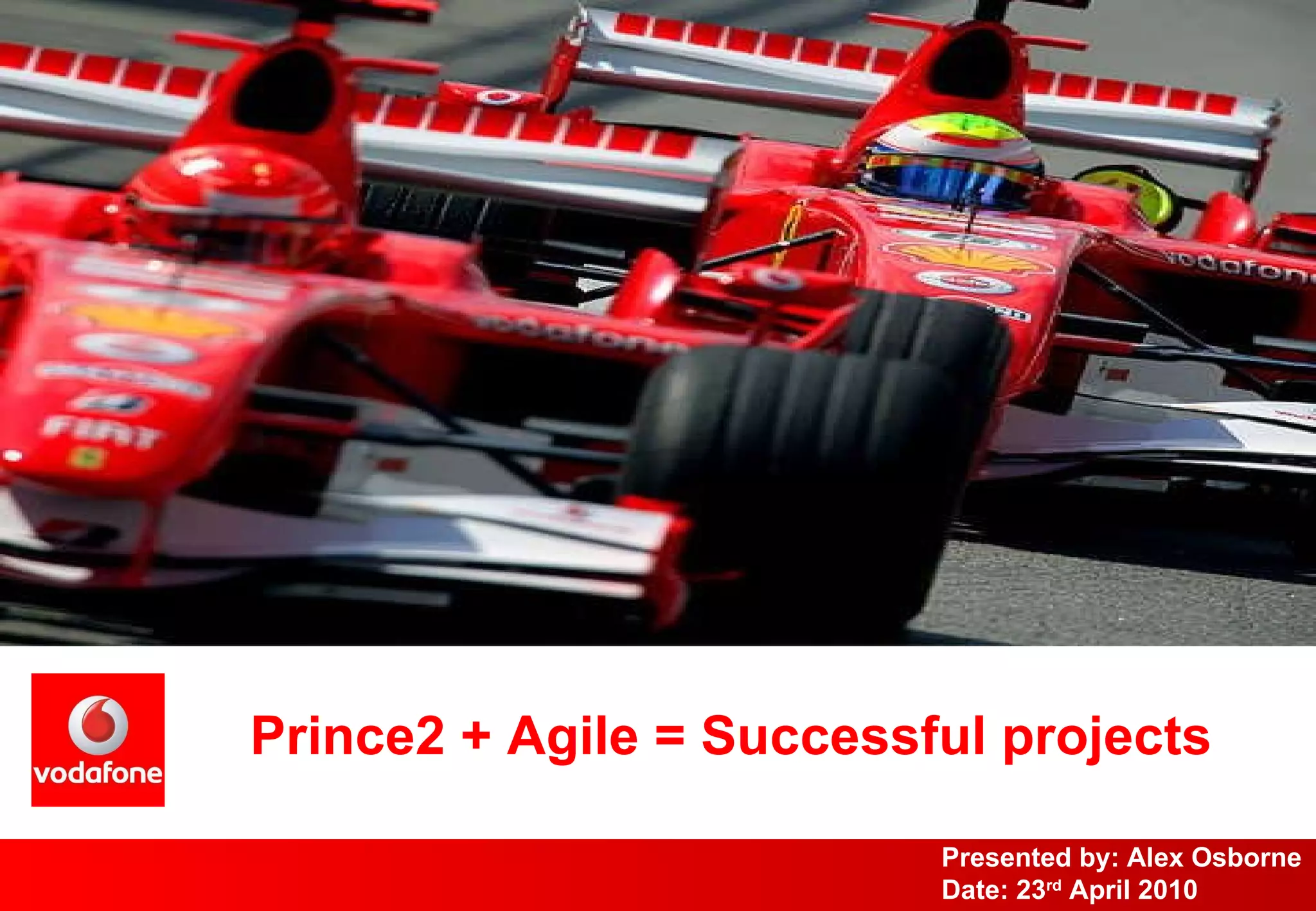 This document discusses integrating the Prince2 project management methodology with Agile methods like DSDM Atern. It outlines the key benefits of Prince2 and reasons for changing to a more Agile approach. DSDM Atern is described as having principles and techniques that overlap with Prince2. Integrating the two can provide benefits like iterative delivery and increased flexibility, while maintaining Prince2's governance structures. Considerations for a successful integration include assessing organizational culture, identifying pilot projects, and introducing Agile techniques gradually.