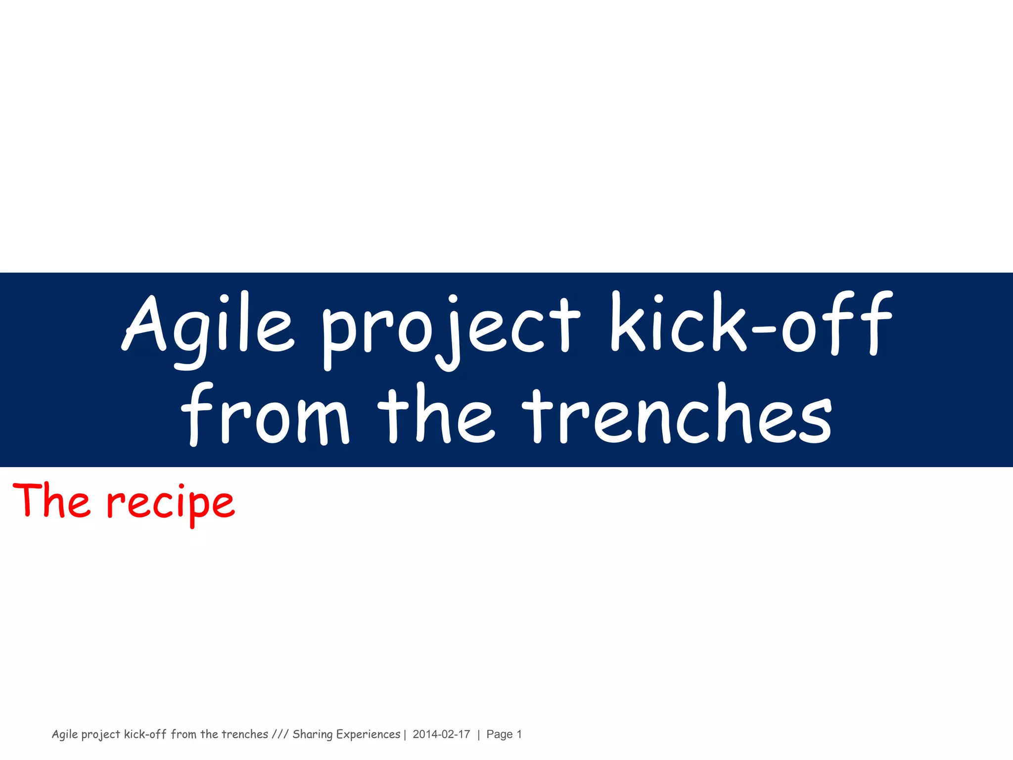 This document outlines the process for an agile project kick-off meeting. It discusses preparing for the meeting by defining the project scope and vision, managing stakeholders, setting up collaboration tools, and establishing continuous integration. The execution section describes calling the kick-off meeting, presenting the project details, agreeing on working agreements and processes, managing stakeholders, conducting a competence gap analysis, and initiating risk management planning. The goal is to provide all necessary information and set expectations to start the project with confidence.