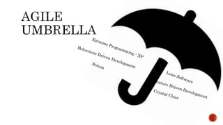 The document discusses key concepts in Agile development including Scrum framework. It compares traditional waterfall model with Agile approach. Some key Scrum concepts covered are roles, events, artifacts, empirical process control, transparency, self-organizing teams. It provides details on events like daily scrum, sprint planning and retrospective. Artifacts discussed are product backlog, sprint backlog and definition of done. Traditional vs Agile success rates are also shared.