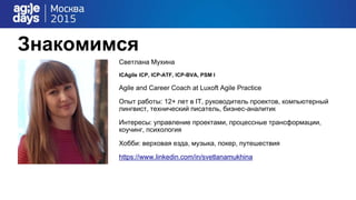 Документ описывает подходы к коучингу и самокоучингу, включая их преимущества и методы эффективной работы. Светлана Мухина делится своим опытом и рекомендациями по проведению коучинговых сессий, а также указывает на важность изменения мышления и поведения. Также рассматриваются техники принятия решений и изменение эмоционального состояния.