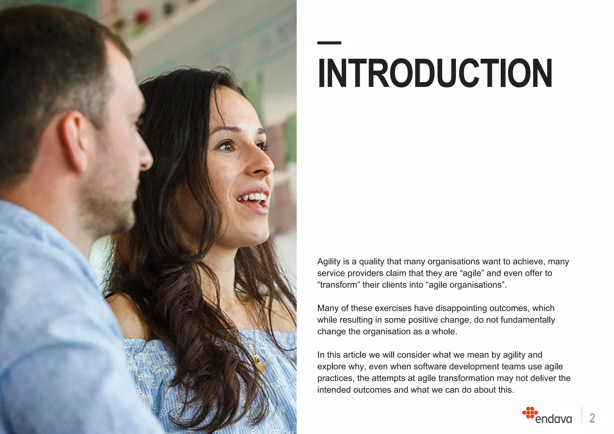 The document discusses the challenges and broader organizational changes necessary for successful agile transformation beyond software development teams. It emphasizes that true agility is an organizational characteristic that requires support from all business functions and the integration of agile practices throughout various teams, including operations and testing. The article advocates for a comprehensive approach to agility that includes adopting supportive infrastructure and managing existing applications effectively to enhance overall responsiveness and success.