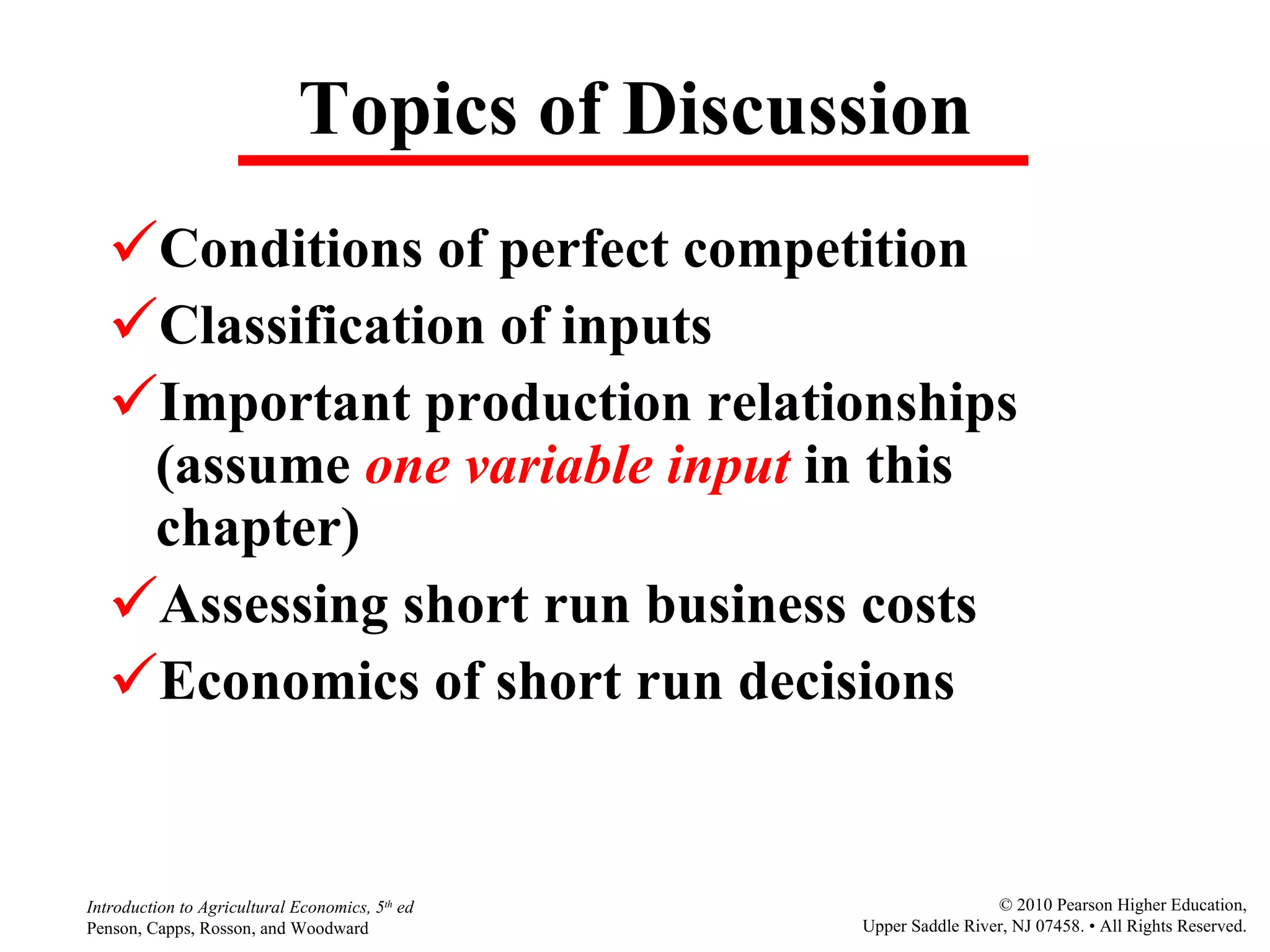 - Conditions of perfect competition and classifications of inputs (labor, capital, land, management)