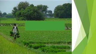 This document describes an agriculture bot created by students Patel Sanket and Sevak Nevil. The agriculture bot is a robot designed to automatically complete agriculture-related tasks like cutting plants. It discusses the components used to build the bot, including an Arduino microcontroller, DC motors, ultrasonic sensors, and a motor shield. It also provides background on agriculture revolutions and explains the design process, from conceptualizing the bot to selecting parts, programming, and creating a mobile app for control. The goal of the agriculture bot is to help reduce the effort for subsistence farmers compared to traditional manual methods.