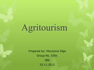 Agritourism involves activities that bring visitors to farms, like picking fruit or feeding animals. It provides additional income for farmers and promotes understanding between rural and urban communities. While it increases costs and liability, governments support agritourism. It educates people about food production and local economies. Studies show agritourism is a growing sector, as people want to know where their food comes from.