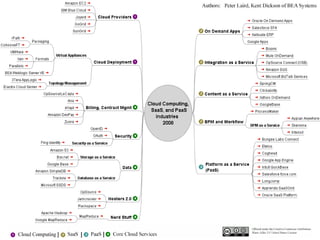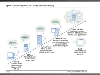 The document discusses cloud computing, including its history and types (private, public, hybrid clouds). It outlines the key characteristics and components of cloud computing like software, platform and infrastructure as a service. The proposed benefits include lower costs, flexibility, scalability, reliability and sustainability. However, concerns relate to privacy, security, regulation and long-term viability. The document recommends a hybrid cloud approach to balance cost savings with control over sensitive data.
