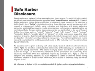 The document is an investor presentation for Agility Health, Inc. It provides an overview of Agility Health as a leading healthcare provider focused on physical rehabilitation services. Some key points: