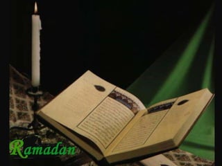 The document provides guidance on how Muslims should prepare for and observe the holy month of Ramadan, which includes fasting, increased acts of worship, seeking forgiveness, and spiritual reflection. It emphasizes utilizing this time to purify one's soul and get closer to God through obeying His commands as revealed in the Quran and teachings of Prophet Muhammad. Special emphasis is placed on worshipping during Laylat al-Qadr (Night of Power), seeking God's forgiveness, reviewing the Quran, and maintaining good character.