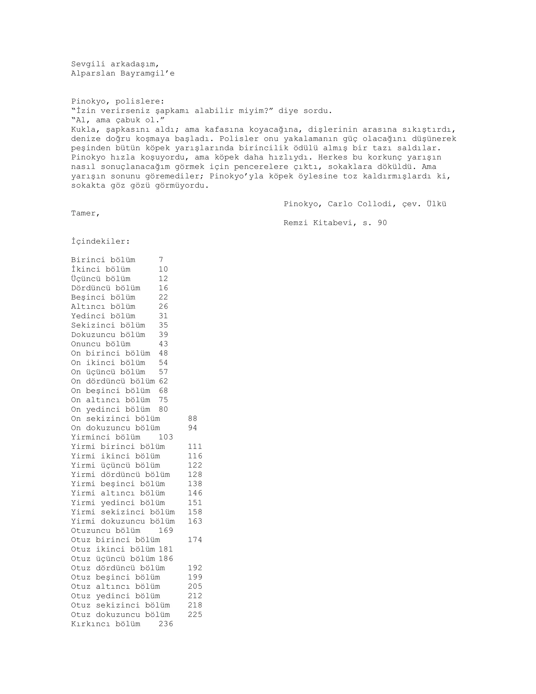 Pinokyo, Carlo Collodi, çev. Ülkü