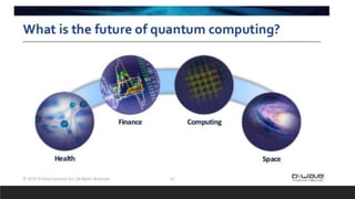 Quantum Computing ) යමහිදී පරමාණුක යොදා ගනිමින් පරිගණකයෙහි මතකෙ හා සකසනෙ නිර්මාණෙ කර යගන තිබීම. යකාන්ටේ පරිගණක වෙ 1 හා 0 එකවර නිරූපණෙ කළ හැකි බැවින් සංකීර්ණ කාර්ෙෙන් වෙ දී එම කාර්ෙෙන් කාර්ෙක්ෂමව කර ගැනීම සඳහා යමම පරිගණක යොදා ගත හැකිව තියේ. යකාන්ටේ පරිගණක වෙ භාවිත වන්යන් කියුබිටෙ නේ අගෙයි.