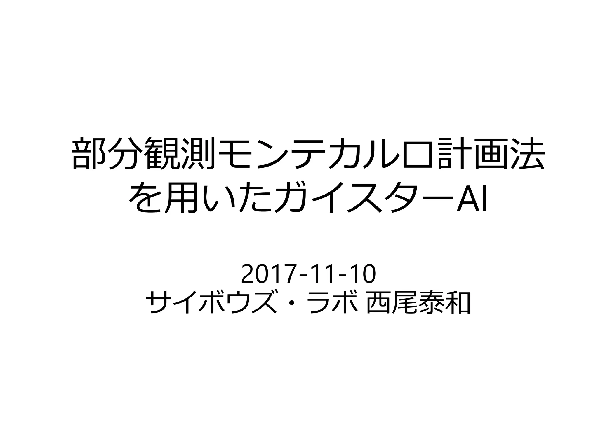 部分観測モンテカルロ計画法 を用いたガイスターAI 2017-11-10 サイボウズ・ラボ 西尾泰和