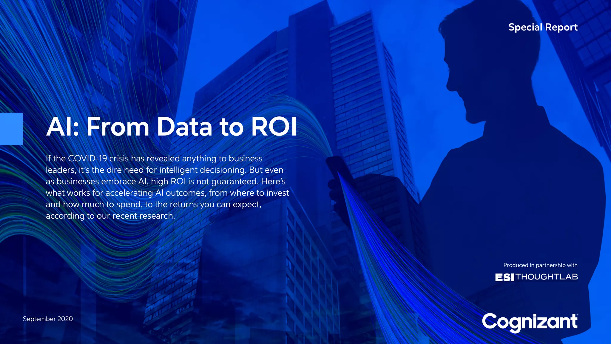 The September 2020 special report outlines the increasing importance of AI for businesses in navigating uncertainty, as highlighted by the COVID-19 pandemic. While two-thirds of executives see AI as crucial for future success, achieving high ROI remains challenging, with significant initial investments and an average ROI of just 1.3% after about 17 months. The report stresses the need for proper data management and infrastructure to ensure effective AI implementation and outlines a roadmap for companies to enhance their AI capabilities.