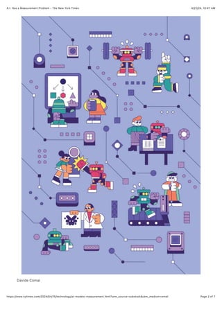 The New York Times article discusses the significant measurement problem facing artificial intelligence (AI) technologies, emphasizing that there is currently no standardized method to evaluate their performance. This lack of reliable metrics complicates users' decisions on which AI tools to use and raises safety concerns, as companies primarily rely on vague claims about their products' capabilities. To address these issues, the article suggests that both public and private efforts are necessary to develop rigorous testing programs and promote transparency in AI evaluations.