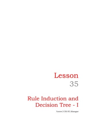 This document discusses decision trees, which classify examples based on decisions made at internal nodes based on attribute values. It defines decision trees and how they classify examples by following branches from the root node to a terminal node. It describes how decision trees are constructed using a top-down, greedy search approach that recursively separates the training data into subsets based on the best attribute at each step until reaching a leaf node.