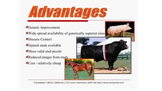 1. Artificial insemination involves inserting sperm from the male into the female's reproductive tract without natural mating.