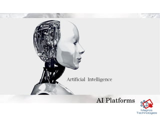 The document discusses various AI platforms and considerations for selecting an AI platform. It provides details on hardware requirements, basic libraries, compilers, programming languages, and operating systems that AI platforms use. It then describes the functionalities AI platforms provide like image recognition, NLP, recommendations. Key considerations for selection include intended users, simplicity vs flexibility, availability of pre-trained models, scalability, and licensing. Popular platforms discussed are Google Cloud, AWS, Microsoft Azure, IBM Watson.