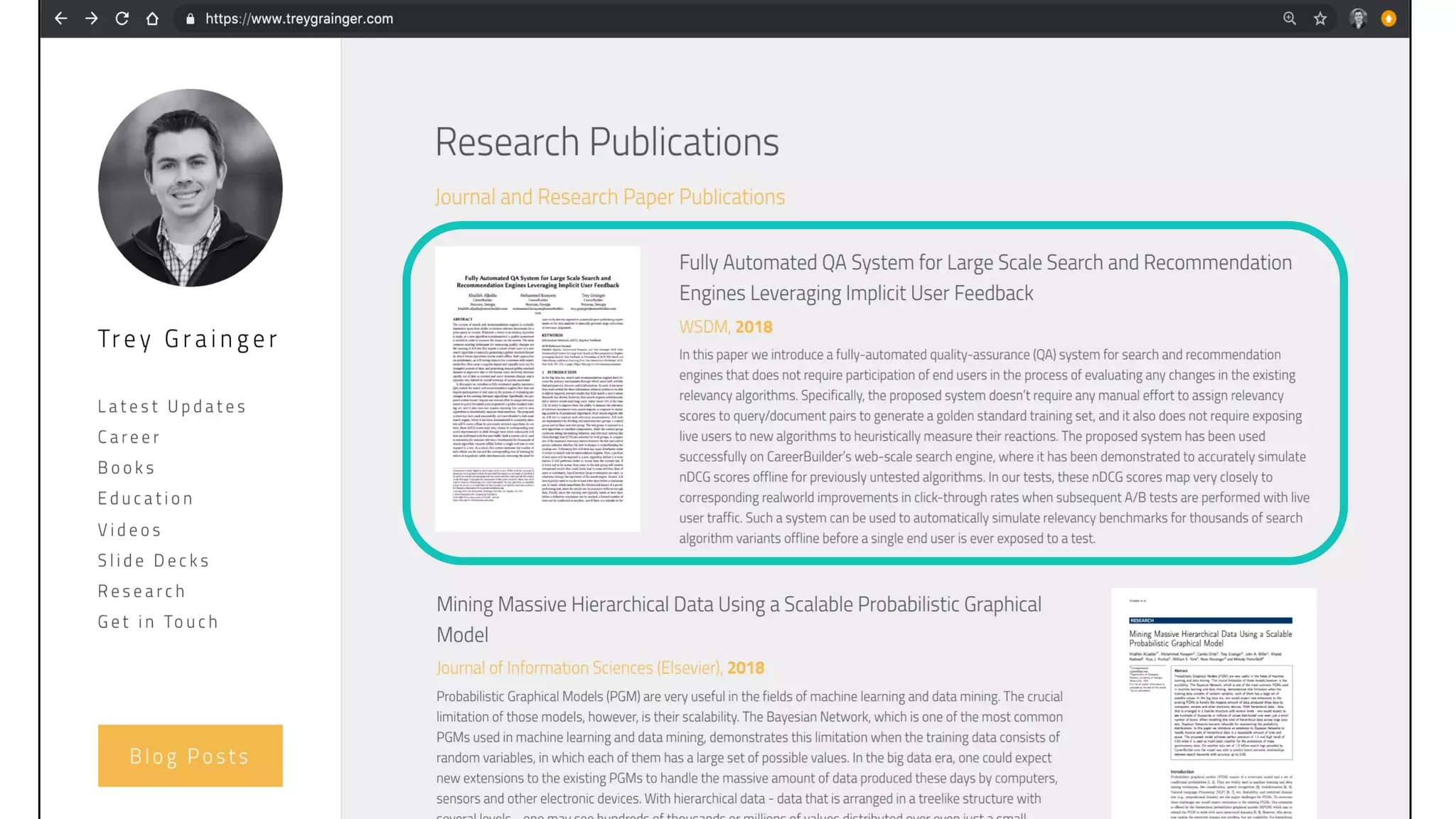 Trey Grainger discussed how search has evolved from basic keyword search to more advanced capabilities like understanding user intent, providing personalized search, and augmented search using machine learning and AI. He explained the concept of "reflected intelligence" where user interactions with search results are used to continuously improve search quality through techniques like signals boosting, learning to rank, and collaborative filtering. Grainger also outlined how knowledge graphs can help power semantic search by modeling relationships between entities to better understand queries and provide more relevant results.