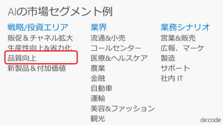 The document discusses various AI and cognitive services offered by Microsoft, including computer vision, speech recognition, and custom decision services. It highlights the importance of building predictive models using statistical analysis and the continued development of AI technologies through projects and collaborations. Resources for accessing and utilizing these services, as well as details on specific use cases, are also provided.