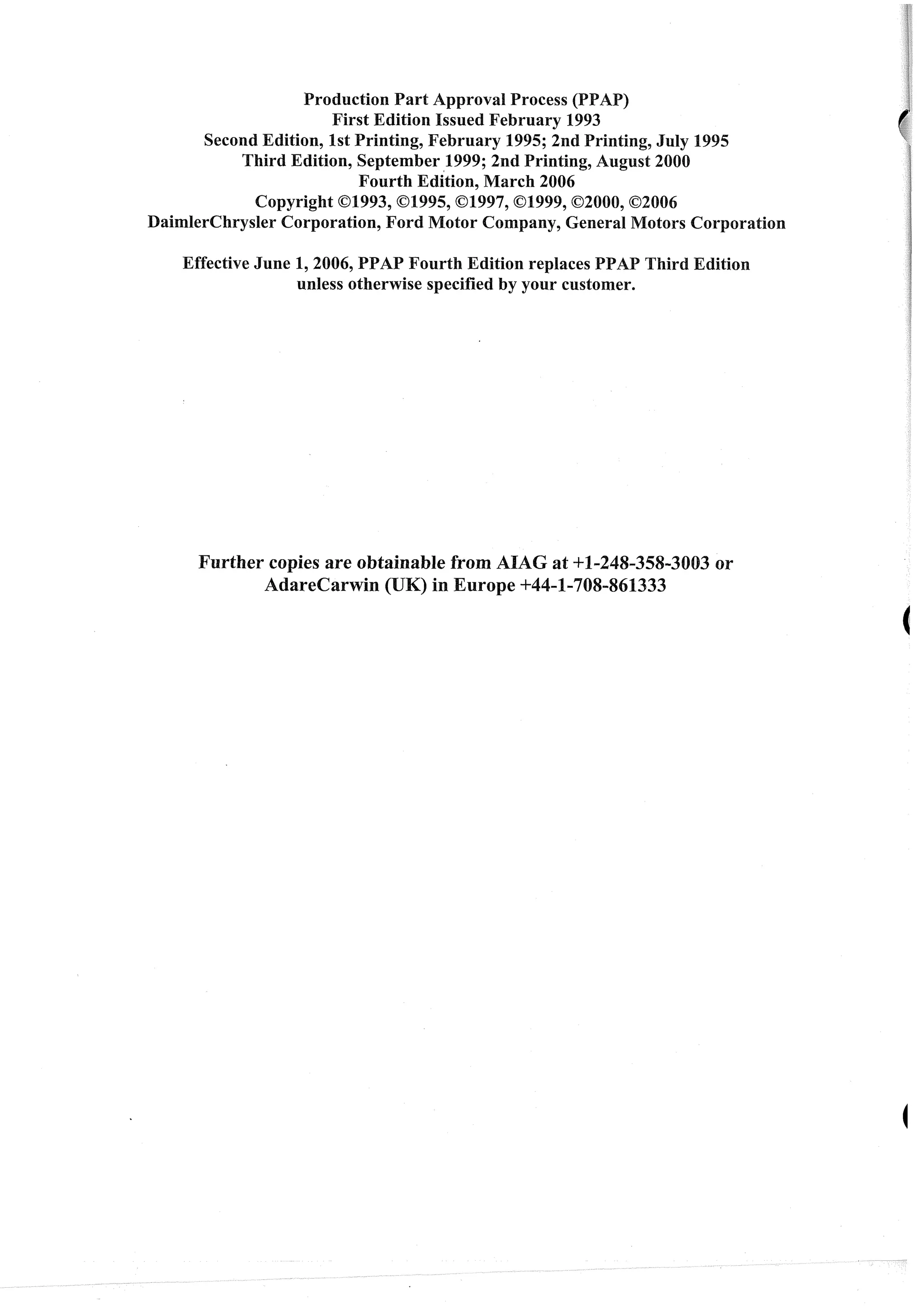 This document summarizes the changes made between the third and fourth editions of the Production Part Approval Process (PPAP). Key changes include aligning the PPAP with ISO/TS 16949:2002, relocating customer-specific instructions to websites, updating truck OEM requirements, and revising forms like the Part Submission Warrant. The purpose of PPAP remains to provide evidence that manufacturing can consistently produce parts meeting all customer requirements.