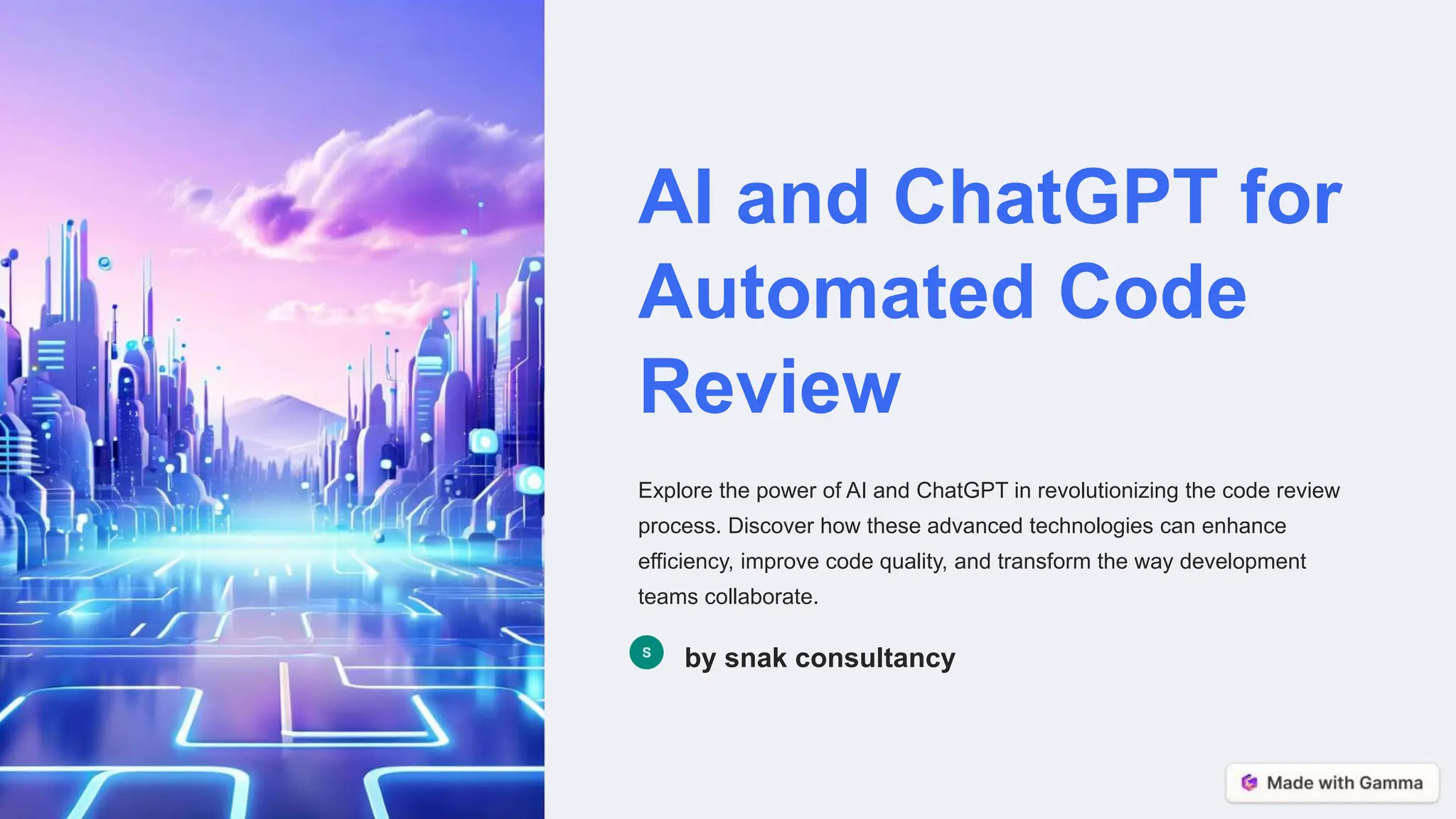 The document discusses the impact of AI and ChatGPT on automating the code review process, highlighting benefits such as improved efficiency, enhanced code quality, and accelerated development. It addresses limitations of traditional code review, including inconsistencies and biases, and outlines how AI can automate issue detection while ChatGPT can provide contextual feedback. It also emphasizes the importance of implementing these technologies responsibly, addressing challenges like security and bias mitigation.