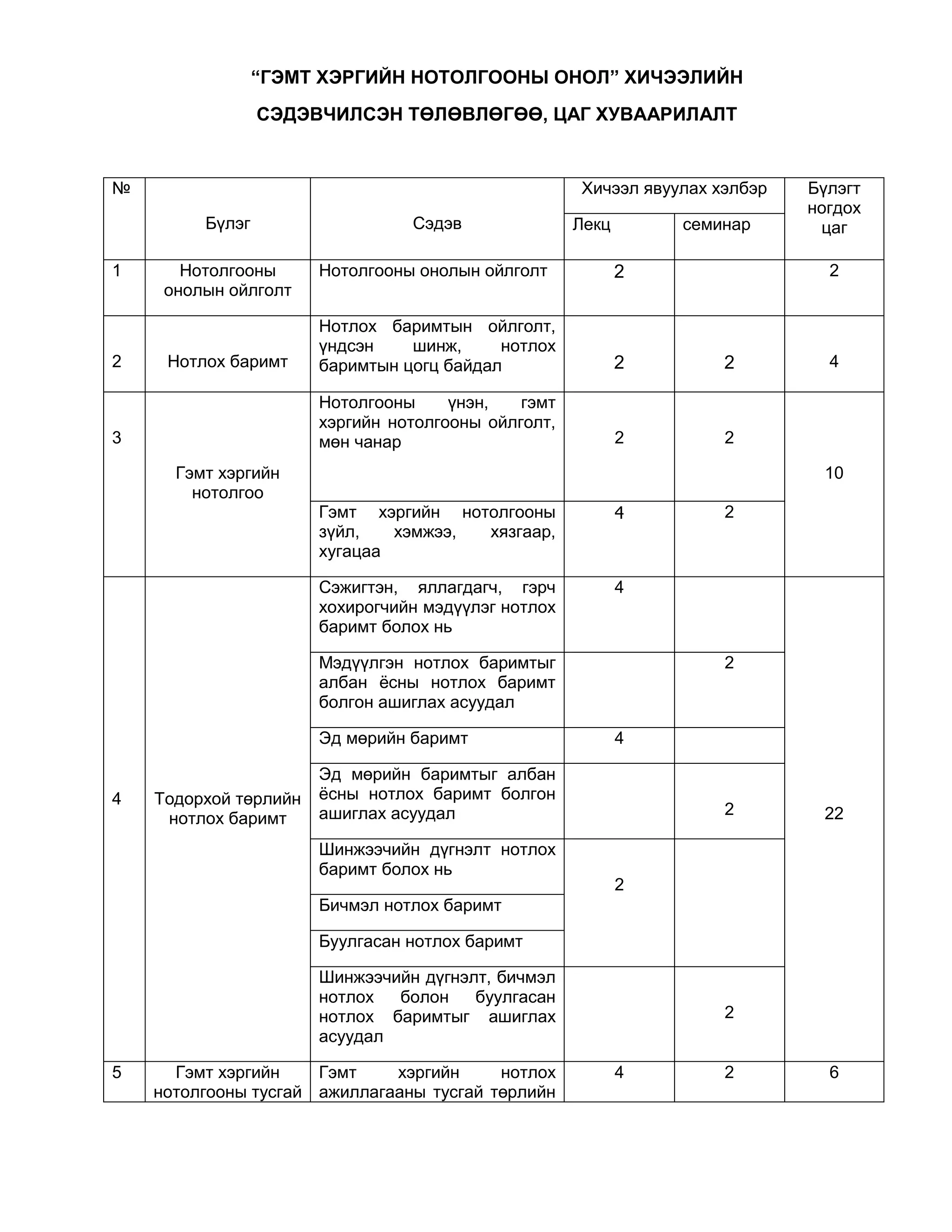 “ГЭМТ ХЭРГИЙН НОТОЛГООНЫОНОЛ” ХИЧЭЭЛИЙН