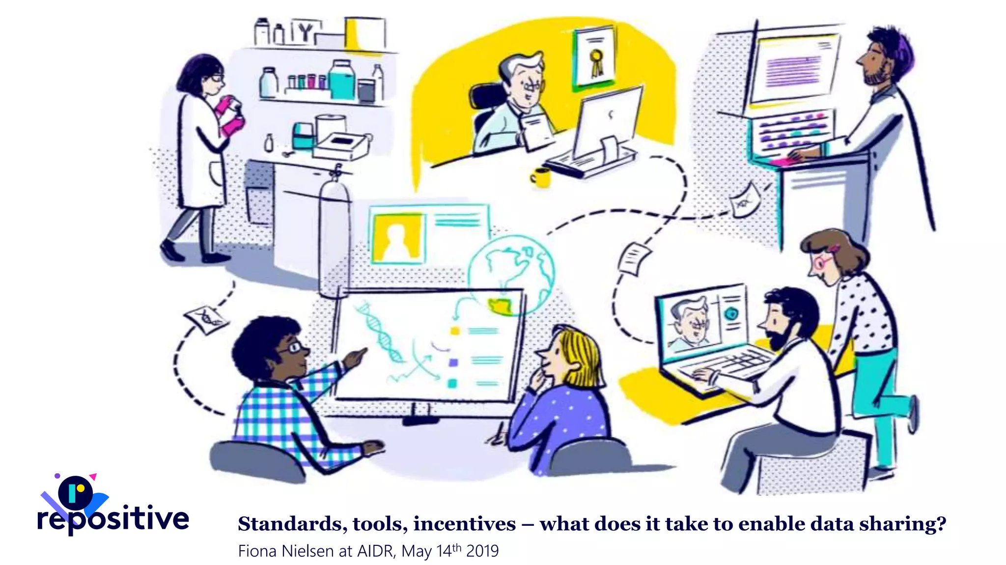 Fiona Nielsen founded Repositive to address the challenges of data sharing and accessibility in genomics research. Repositive developed tools to make large amounts of genomic data more discoverable, including a search engine of over 1 million public data sets. Repositive also launched a marketplace to help cancer researchers find the right models for their studies by organizing complex data on genetic profiles and phenotypes of thousands of cancer models. However, Nielsen notes that while standards and tools are important, incentives are also needed to motivate data sharing and reuse at scale. She advocates recognizing data stewardship contributions and aligning policies and practices, like hiring and funding, to incentivize open data practices.