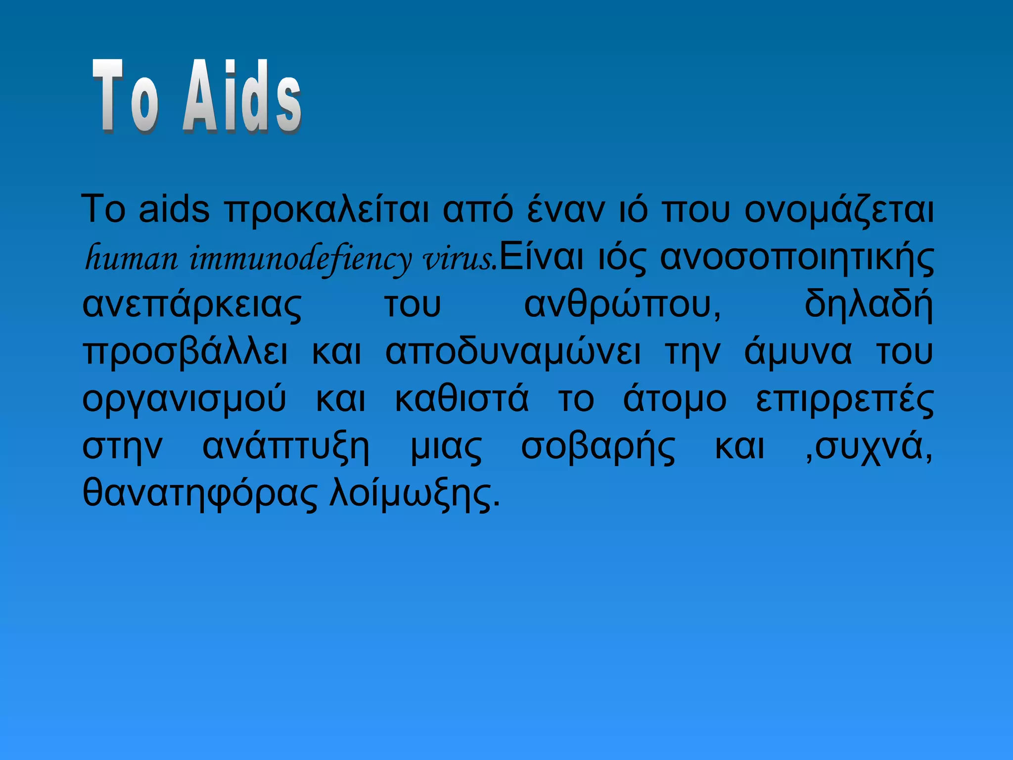 To aids προκαλείταιαπό έναν ιό που ονομάζεται