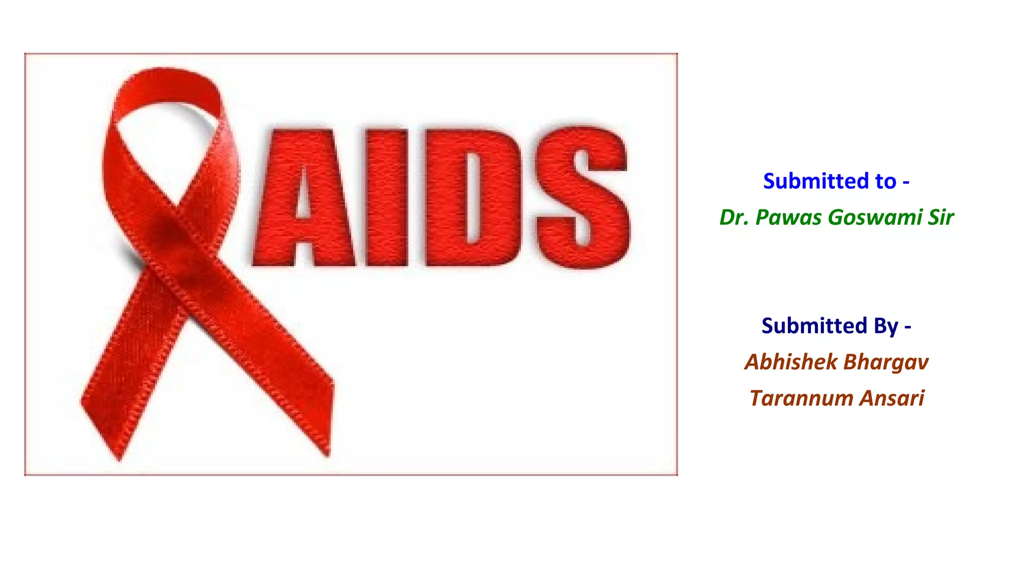 HIV attacks the immune system and without treatment can develop into AIDS. It is a retrovirus 120nm in size that integrates into the host DNA. It is transmitted via bodily fluids and causes a progressive decline in immune cells. While there is no cure, antiretroviral treatment can suppress the virus and prevent complications. Globally, HIV affects millions with sub-Saharan Africa most impacted.