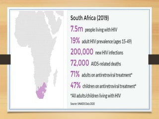 This document discusses HIV and AIDS, providing definitions and key details: