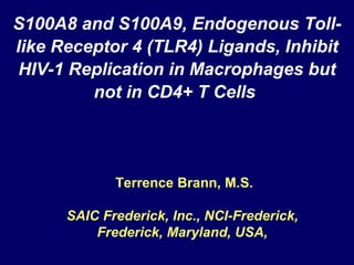3) The results showed that S100A8 and S100A9 reduced HIV production in MDMs by decreasing expression of the HIV co-receptor CCR5, but did not inhibit HIV replication in CD4+ T cells or peripheral blood mononuclear cells (PBMCs).