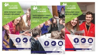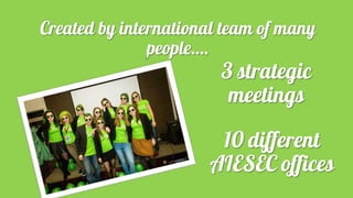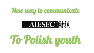 The document outlines a product launch session for AIESEC in Poland members in March 2014. AIESEC offers a development program for students to develop leadership skills by working on projects in a multicultural environment in areas of communication, presentation, recruitment, and talent acquisition. The session will cover refreshing AIESEC's branding, recruitment model, and standards for allocating new members to projects to increase satisfaction. It lists the VP for Talent Management and VP for Communications who will manage the project.