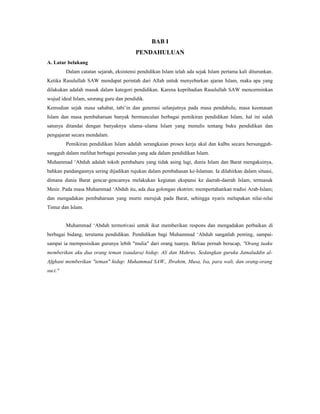 1. Muhammad 'Abduh adalah tokoh pembaharu pendidikan Islam di Mesir abad ke-19. Ia berupaya mereformasi pendidikan dengan menyelaraskan antara pendidikan agama dan umum serta membuka pintu ijtihad.