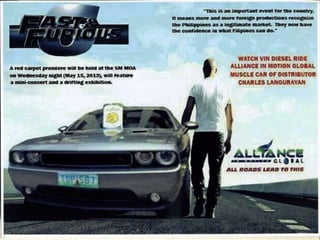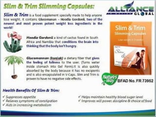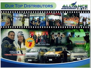 This document provides information about a company called Alliance In Motion including its leadership, recognition, partnerships, products, and marketing plan. The company is duly recognized by the Philippine Securities and Exchange Commission and is a member of various international organizations. It has over 45 years of experience in the health and beauty industry with 500 product lines that are FDA, HALAL, and KOSHER approved. The marketing plan allows individuals to earn income in various ways including retail profits, commissions, bonuses, and overrides.