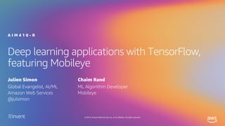 Mobileye adopted Amazon SageMaker to accelerate its deep learning model development, reducing time from months to under a week. Pipe Mode enabled training on Mobileye's large datasets without copying data to instances. Challenges like data format conversion and shuffling were addressed using SageMaker features and TensorFlow APIs. Adopting SageMaker provided Mobileye unlimited compute and helped simplify and scale its neural network training.