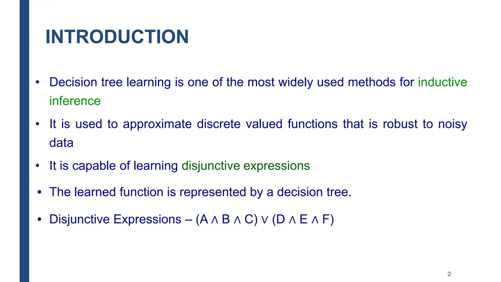 - Decision trees represent a disjunction of conjunctions of constraints on attribute values to classify instances.