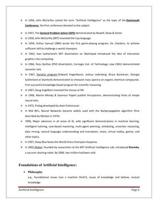 - The foundations and subareas of AI, including problem solving, machine learning, neural networks, and applications in business, engineering, and more.