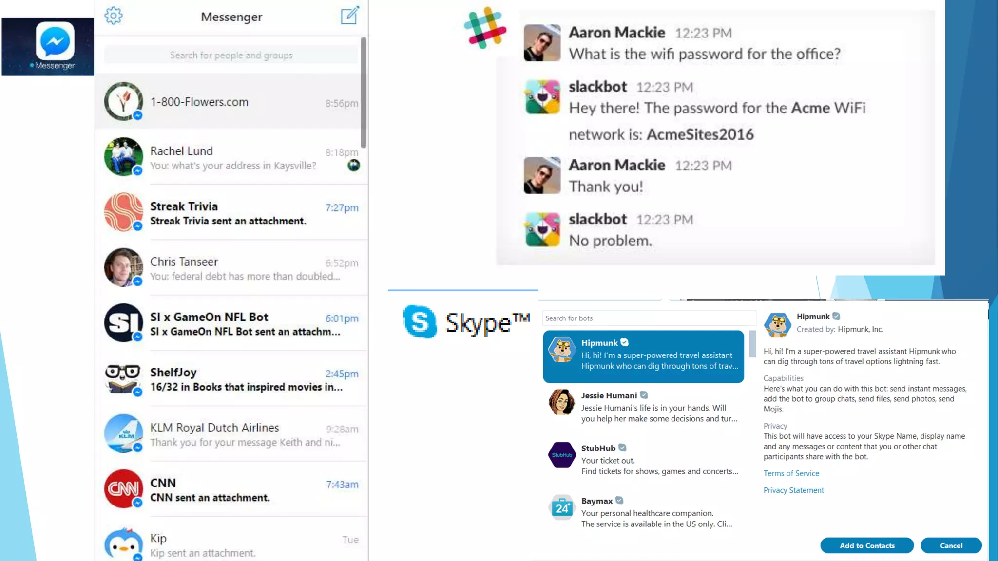 This document discusses the rise of chatbots and conversational commerce. It notes that messaging apps have become very popular and chatbots provide a way for companies to engage customers in these spaces. The document outlines the history of chatbots in 2016 and discusses how technologies like artificial intelligence and machine learning will allow chatbots to have more natural language conversations. It also notes analysts' predictions that the market for chatbots and virtual assistants will grow significantly in coming years.