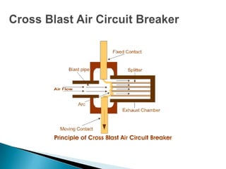 This document provides information about an electrical circuit breaker project conducted by 4th year electrical engineering students at Benha University in Egypt. It lists the names and student numbers of 4 students involved in the project, with student numbers ranging from 73 to 138. The rest of the document discusses the basic working principles of electrical circuit breakers, including their components, operating mechanisms, types according to various classification schemes, and arc quenching technologies.
