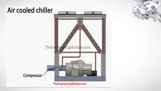 This document discusses the principles and operation of an air cooled chiller. It explains that an air cooled chiller uses air as a heat sink to reject heat from a refrigeration circuit to the atmosphere. The document repeats that it is about an air cooled chiller and encourages viewers to like, share, subscribe and watch over 480 videos available on the topic.